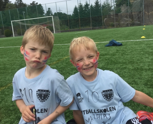 Etter lunsj kom det alle hadde ventet på. Alle gruppene var delt opp i ulike land, og alle som ønsket hadde tegnet flagget til landet i fjeset. I år var det to puljer i VM. En gruppe for de eldste, og en for de yngste. Det var mange lag som hadde et godt samarbeid, og det var flere susende skudd som gikk i mål. Etter at 7 kamper var spilt, var det klart for semifinaler. Hos de yngste var det to spennende finaler, og det var tilslutt Argentina og Nederland som trakk det lengste strået. I semifinalene til de eldste var det fantastisk innsats og spennende helt til dommeren blåste av. Til finalen gikk Spania og Brasil. Det var god stemning på feltet gjennom hele VM-turneringen. I morgen tidlig starter vi dagen med to finaler. Vi gleder oss til en ny dag på fotballskolen med konkurranser, grilling og god stemning.